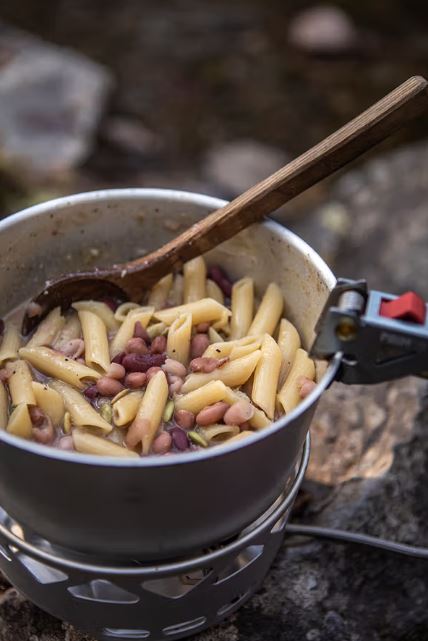 Att äta pasta & bönor på tur är både energirikt & mättande. Kycklingbuljongen ger en smakrik rätt som passar bra för längre turer.