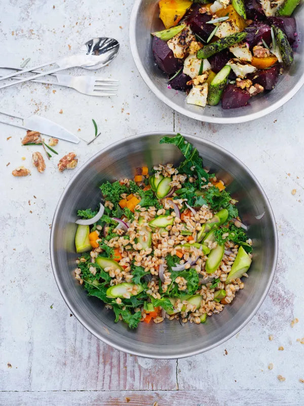Precis som den traditionella franska salladen med rödbetor, vinägrett och honungsgratinerad getost. Men vildare. Koka betorna och matvete hemma och gratinera osten vid lägret med din Firestarter!