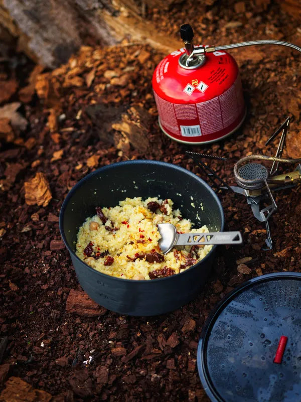 En perfekt lindring för trötta fötter! Både krämig och värmande. Currypulvret bidrar med hetta och de soltorkade tomaterna ger mängder av umami. Allt du behöver är en skaffel (spork) och en mun.