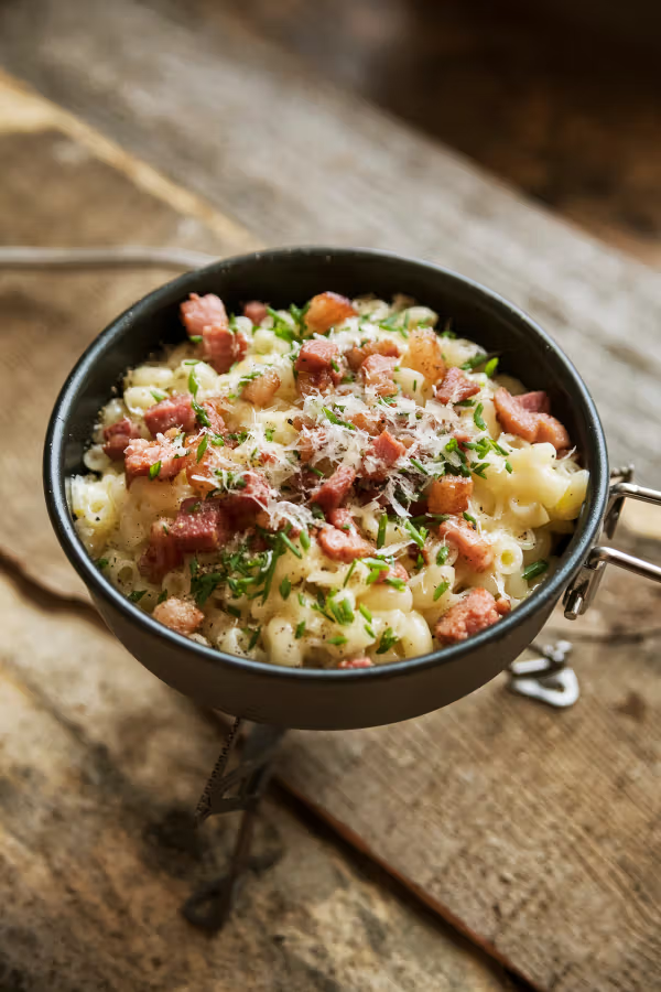 PARMESAN-MAKKARONI MIT KNUSPRIGEM SPECK