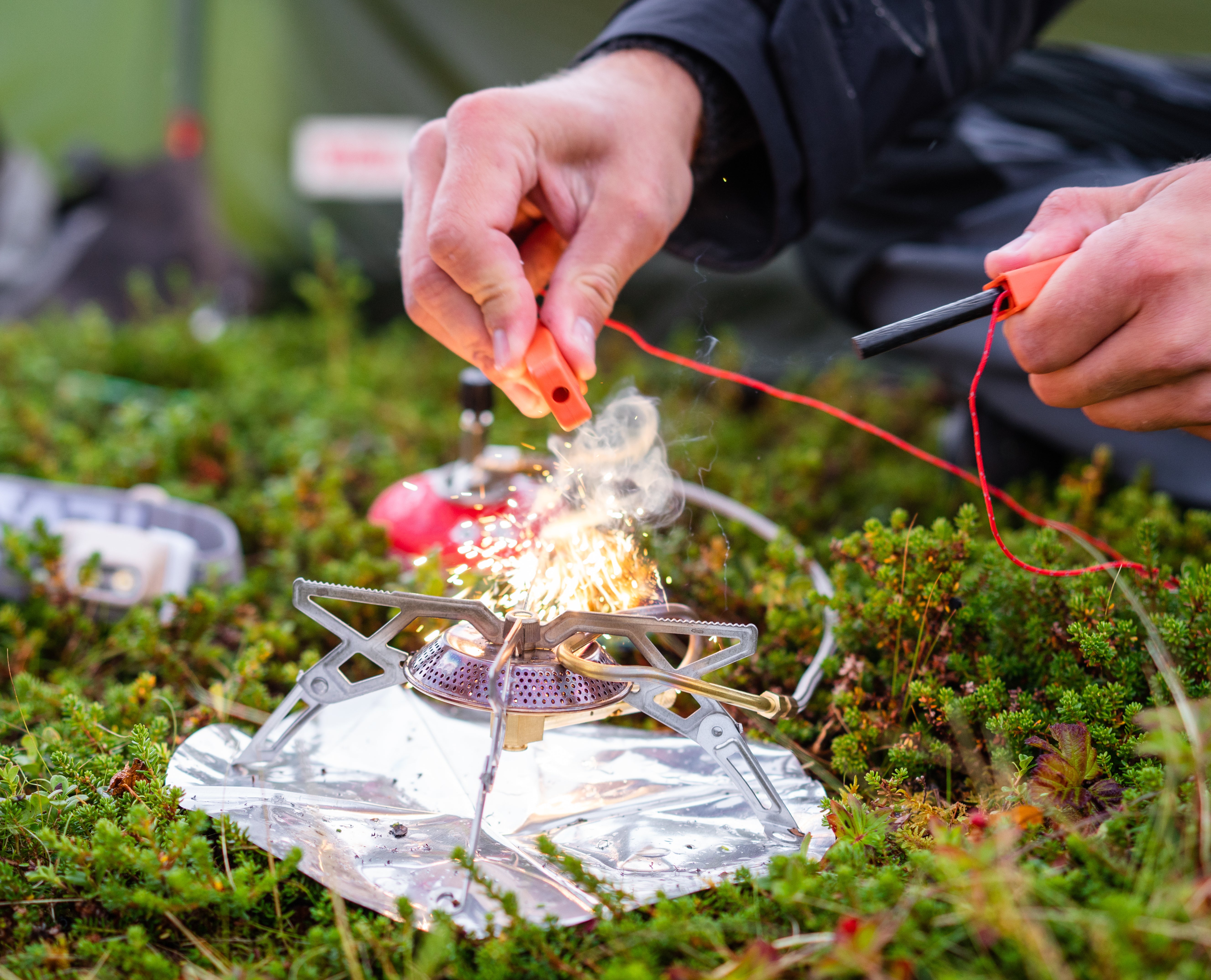 Ausgestattet mit einer Vorheizspule liefert der Gravity Stove 2.700 W Leistung und kann einen Liter Wasser in weniger als vier Minuten erhitzen – selbst bei Kälte. Stark: Der unabhängige T-Griff-Piezozünder zündet bei jedem Wetter, während sein eingebauter Sechskant-Kopf auch als Werkzeug zur Wartung des Kochers dient.