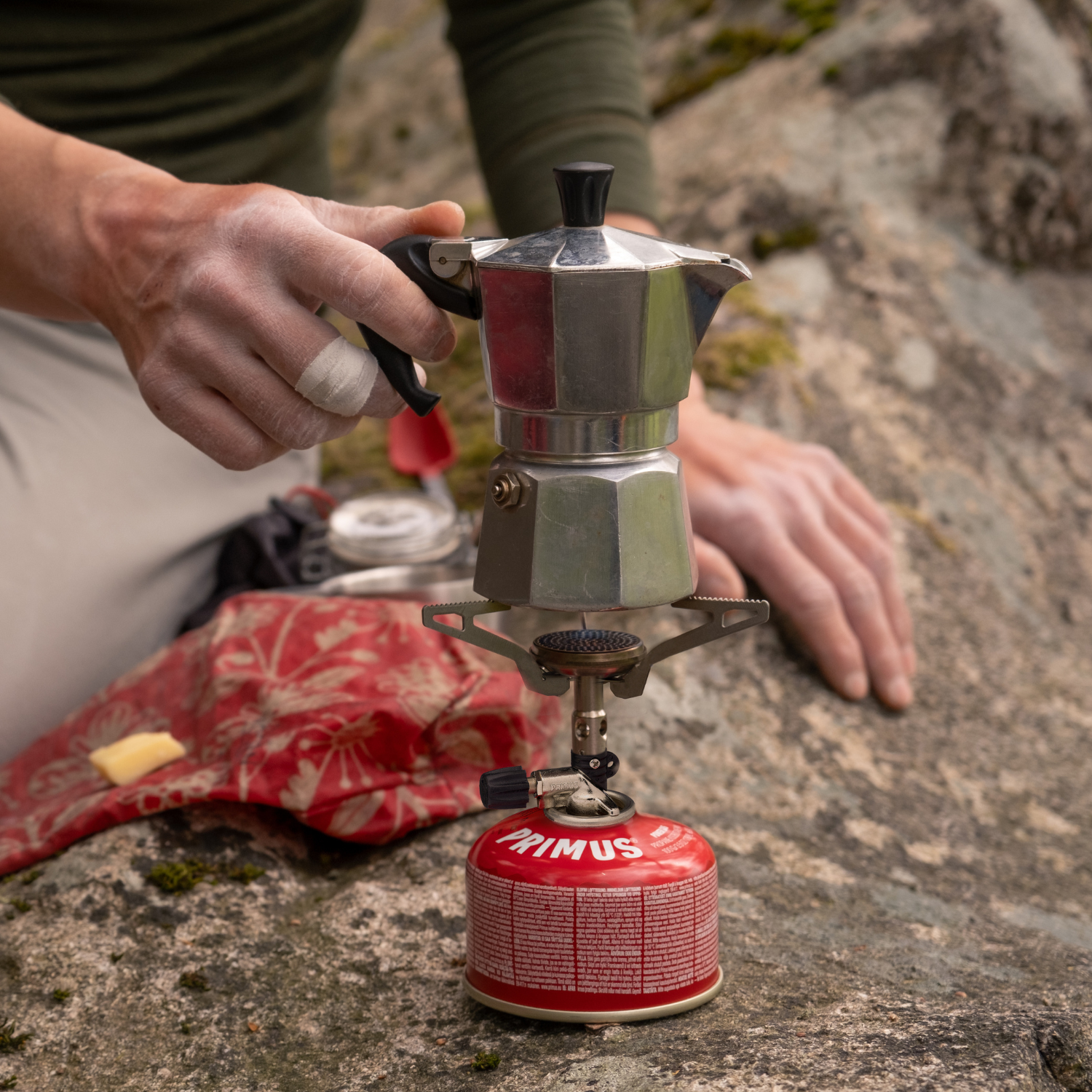 Compact camping stove with a powerful burner for effortless outdoor cooking for 1–3 people.