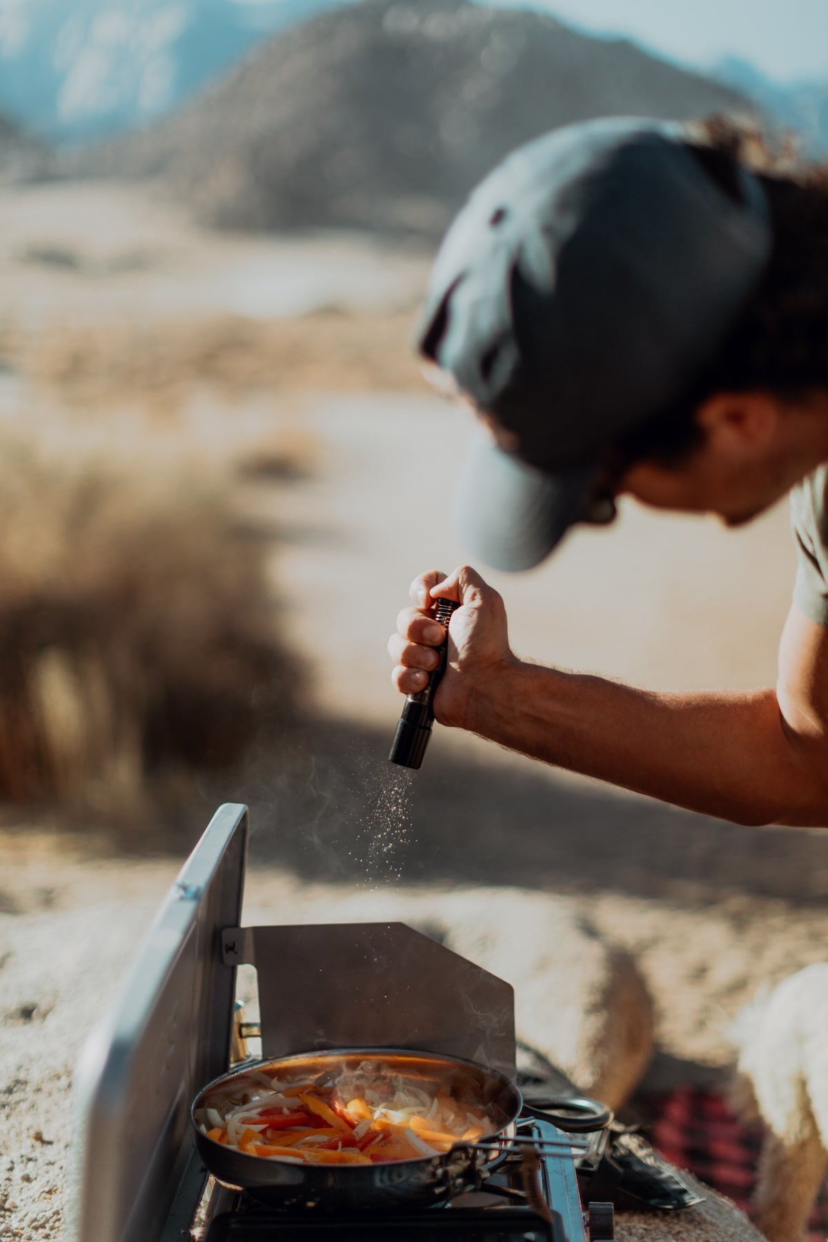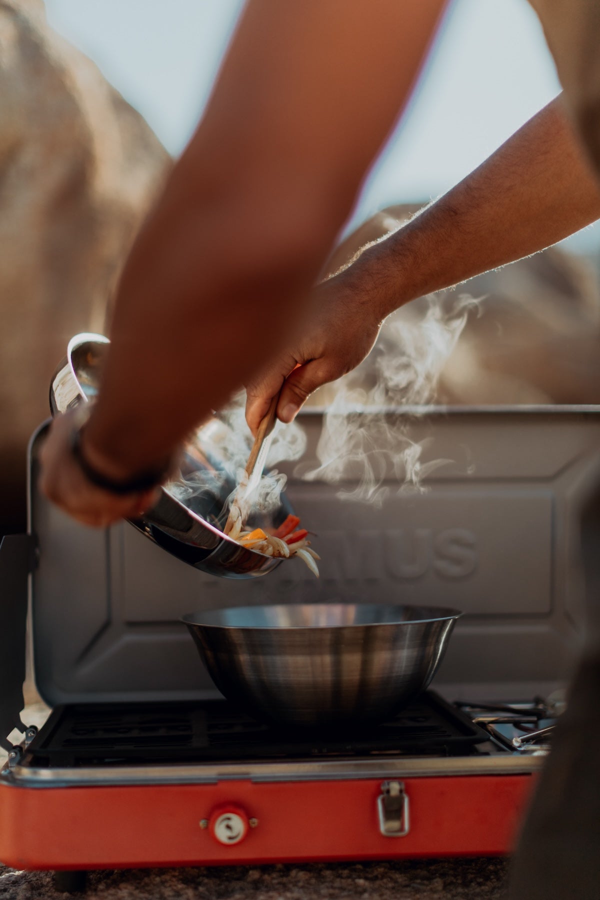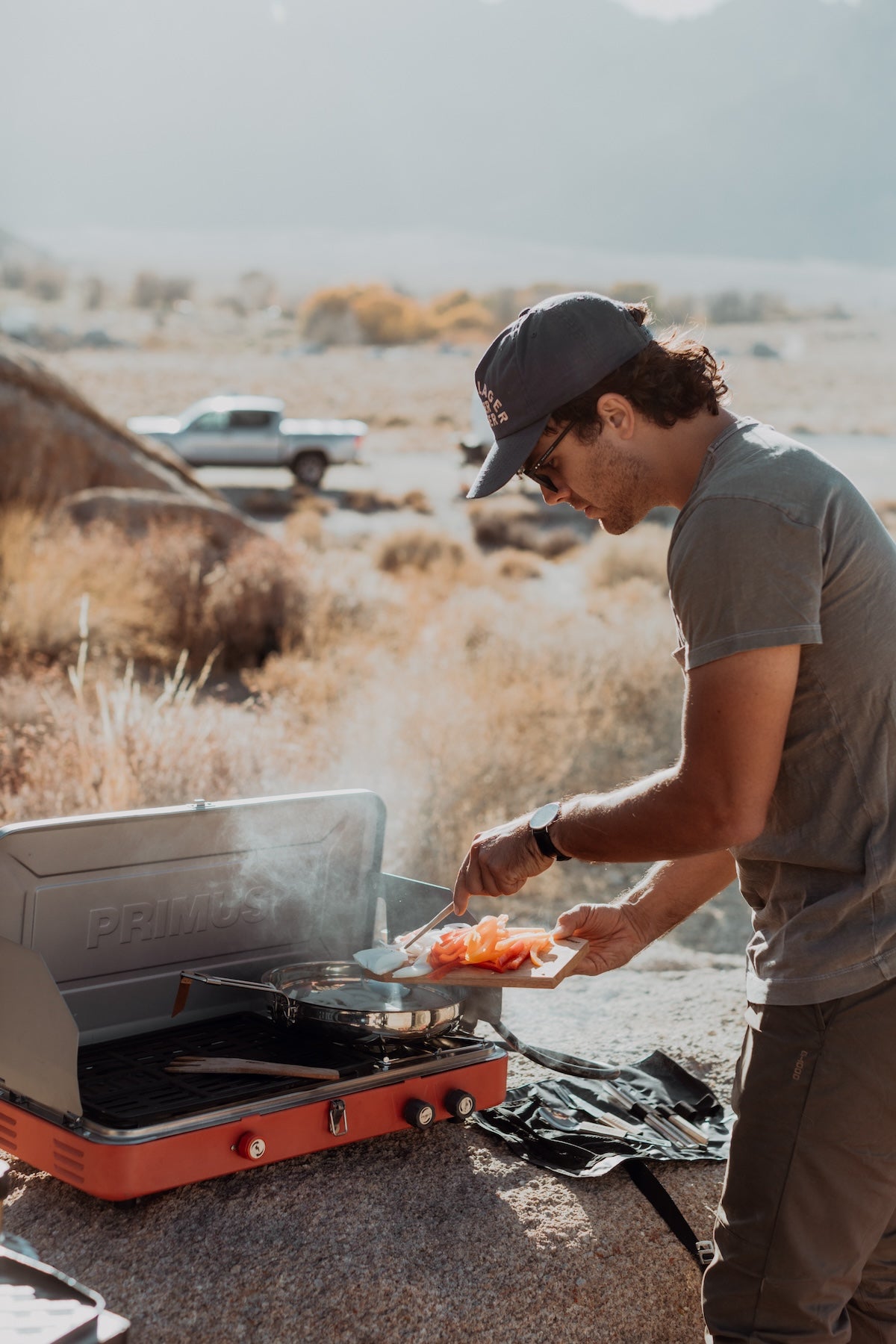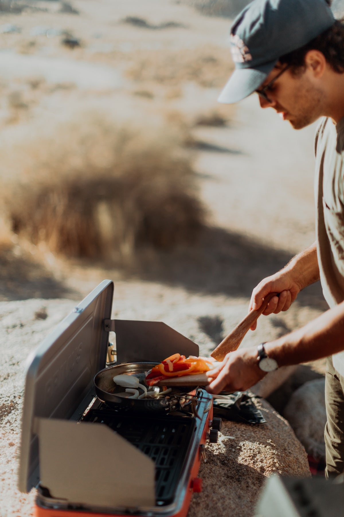 Förbered rejäla måltider var som helst med vårt tvåbrännars campingkök. Byggt för att klara stora kastruller och stekpannor, är det den perfekta följeslagaren på campingplatsen