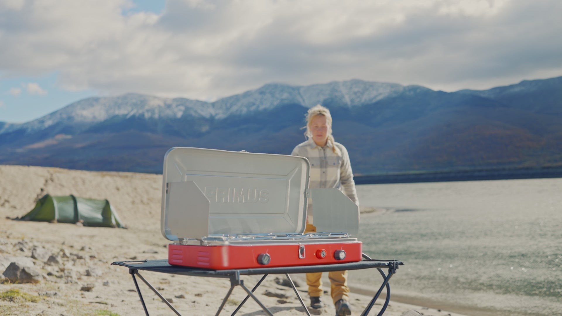 Klassiskt campingkök med två brännare som möjliggör rejäl matlagning