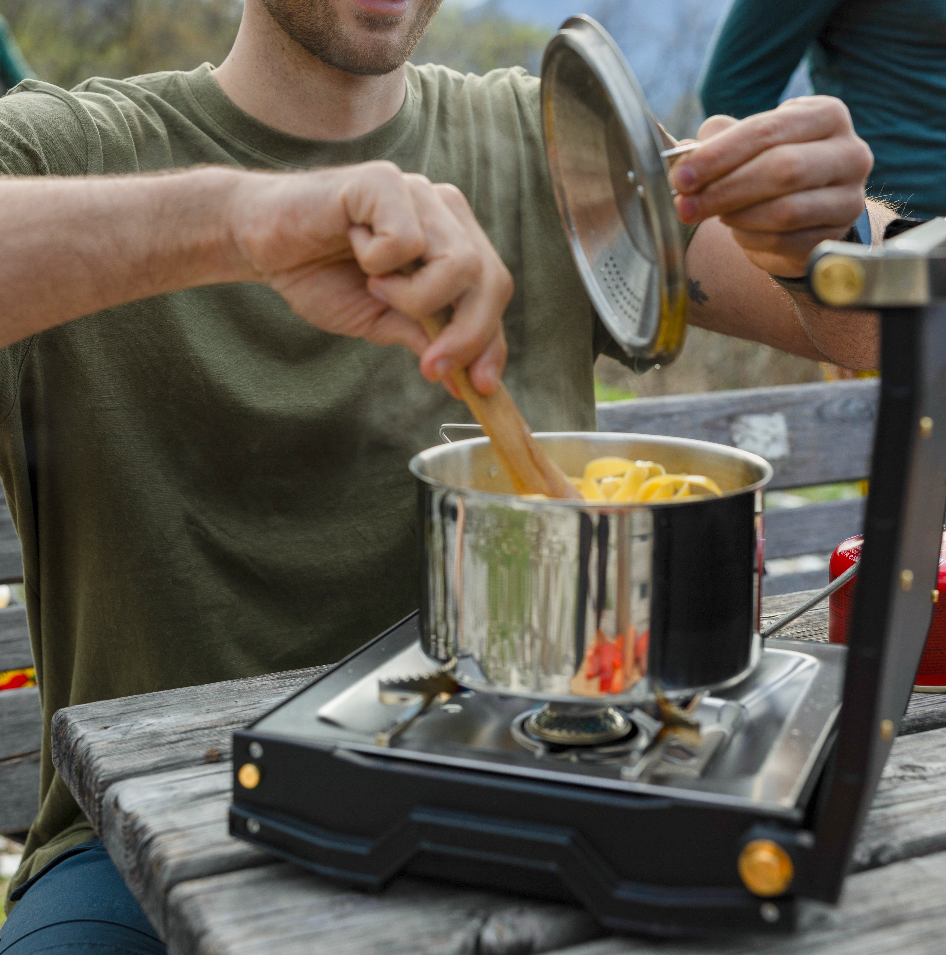 Kompakt campingkök med en kraftfull brännare för enkel utomhusmatlagning åt 1–3 personer.